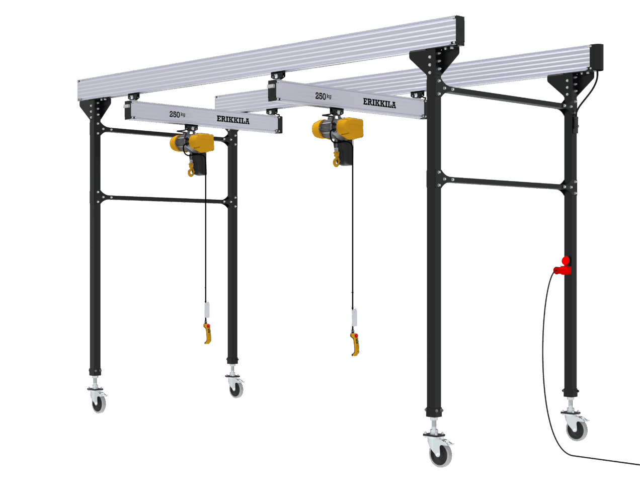 Son design modulaire permet d’intégrer un deuxième pont sur la voie pour multiplier les postes de travail. Disponible en alimentation 230V ou 400V, via câble plat ou gaine intégrée, il s’adapte à votre atelier et vous offre une flexibilité inégalée pour optimiser vos process et gagner en réactivité.